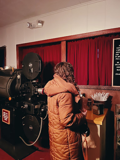 There's only one screening room, and usually it seems they only have one showing per night, but it makes it feel like a special event. But more accessible because you don't have to drive hours to the nearest big franchise theater. Plenty of places in town to enjoy the night out before going to the theater. More likely to talk to a stranger who was in the theater with you watching the same movie as you were, even, or especially, if they aren't a local.