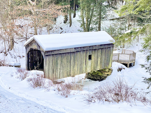 This historic covered bridge looks amazing in the winter!! The snow in the backdrop just makes bridge look magical! The frozen waterfall is crazy unbelievable to see. I love how it looks frozen with the water running underneath. There really isn’t parking so you sort of have to just park on the shoulder for a bit. Luckily it’s a wide enough shoulder. Definitely worth checking out even in the...