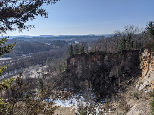 This is one of my favorite geology stops in Wisconsin. Not only do you get to appreciate history behind Van Hise Rock, but the abandoned quarry itself tells a story of the past. On the south end of the quarry, the walls are covered with ripple marks that survived the metamorphic processes that heated and squeezed the ancient sandstone into quartzite. The ripples themselves are the result of an even older sandy beach. They're on the wall because the entire area was folded into the shape of a John Boat (doubly plunging syncline). Closer to Van Hise Rock along the trail you'll catch glimpses of brecciated rocks made up of shattered pieces of the baraboo quartzite glued together by milky white quartz. Across the river you'll find much younger (geologically speaking) sandstone perforated by skolithos...