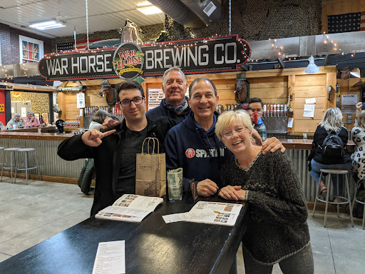 Our last stop was War Horse Brewing. We walked in, looked around a bit for some direction and got nothing. We noticed servers going to tables, so we figured we would sit down and try to figure out what our next step was. When we sat down, a server went to the table next to us to check how they were doing and completely ignored us. No eye contact, no greeting, nothing. I got up and went to the counter and finally was served our flights. No one checked to see how we were doing throughout our tasting, this was a different experience from the first two. I was turned off immediately and ready to go.