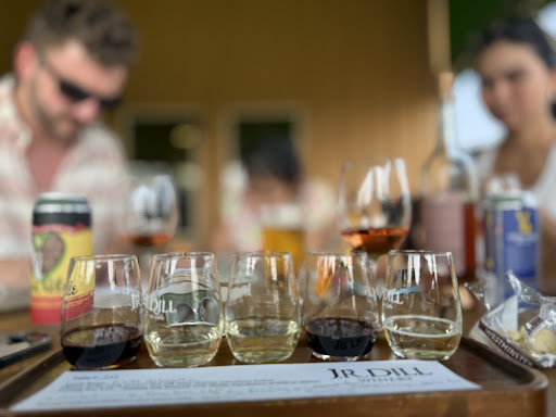Highly Recommend J.R. Dill Winery. My husband and I stopped by for our first visit to J.R. Dill on Thursday, and we LOVED IT!!!! We had the tasting for two, and had the Dry Red Blend, and you get 6 wine choices and we loved 5 out of the 6 and ended up buying all 5 bottles. The wine is delicious and they serve Tapas (light food dishes, including a delicious chacuterie board and hummus. What made it even better was our Wine Pro/Server, Astra, who was so much fun and she is super interesting to talk to. She even gave us the story on how J.R. Dill started the winery and how his Mom helps with the gardening and planting around the winery. Astra was so nice and made us feel so welcomed. If you are in the Seneca Lake area, you must make a stop at J.R. Dill, you won't regret it. Hopefully Astra will be there for your wine tasting. If we could give more than a 5 star, we definitely would. J.R Dill - You are our FAVORITE winery in the Finger Lakes and we will be back over and over and over. ...