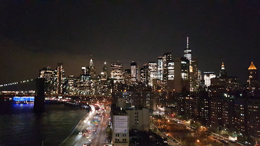 We took the subway down to the indicated location, arriving just after 5:30 with the expectation of a 6pm start. We never found a sign for Chevy's (from folks in the area it sounds like it no longer exists), though google map said we were at it, but we did find a bus sign on the street corner indicated the Grey Line buses, so we were confident we were in the right place. It was cold and damp, but the whole crew was chipper about seeing the city at night. At about 10 after six we started to get worried, no bus had arrived. We soon realized another group of people on the corner were also waiting for the night tour; the customer service reps had also sent them to this location. We decided to call the customer service line again, when we told them where we were they said yes we were at the right location. She put me on hold to check with the dispatcher that a bus was on the way, when she cam back she said it would be another 5 minutes and the bus would be there.
