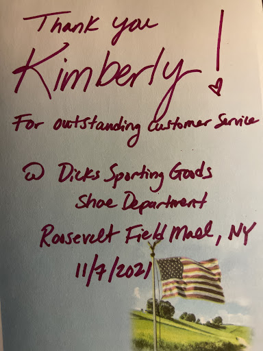 Today I went shopping with my boyfriend for some new running shoes that we both desperately needed on the one day we were able to have off together. I live out of state and was not expecting the craziness of a NY mall approaching the holiday season, so to say it was crowded was an understatement. We didn’t really know what we were looking for and needed to take the time to try different shoes on and spend the time to make a decision on what to us is a large purchase post pandemic. Let me first say-the entire department was working hard to keep up with customer demands getting pulled in every direction interrupted by other customers with other department questions etc and handled it with professionalism and poise. I have worked retail for years and know the demands the holiday season brings. Now to the real reason I am taking the time to write the review-KIMBERLY. Kimberly in the shoe department was next level amazing. She juggled every customer with ease, was so polite and understanding to all, and made every effort to go above and beyond to solve any customers problems. The thing that made it especially memorable is that although we said we were just looking, she would continue to check in on us for the hour and a half we were there, and ALWAYS addressed us by our names “How do you like that fit Kevin? Rachael did you want to try on a similar pair like this..” etc Like even though we were quietly trying to find shoes that needed to be best bang for our buck and tried to keep out of everyone’s way, she made an effort to give us our space while making sure we were taken care of if we had any questions or needed to try other options. Because of her attentiveness, it ultimately led us to make a purchase we hadn’t planned on deciding that day. She was literally the lead waitress of the department and kept everything running so smooth. When I found the manager after to commend her efforts, I was shocked to learn she had only been with the company for 4 weeks. In case I don’t get a survey emailed to me, I wanted to attempt to leave feedback here. A new hire like that for the holiday season is a diamond in the rough, and I truly hope her efforts are noticed because she is a true asset to your company and will be considered for future advancements. Thank you again Kimberly for all your help, kindness and efforts for making this crazy, post pandemic holiday shopping...