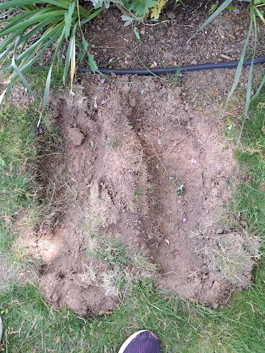 In Aug, we went to visit my family plot for my mother’s birthday and saw that the grave behind theirs had had a recent burial. They dug that grave by putting the machine on our grave and left large gouges in our plot. They never filled them in, just left it like that. When we went to the office to complain about it, the man in the office was nice and apologized, and said that he would have it repaired. When we went back the next week, it was filled in with the smallest amount of grass seed on top. We are always at this cemetery and take care of our plots ourselves, so we brought more grass seed with us because we knew they would do a lousy job. Of course, we weren’t surprised by what we found.
