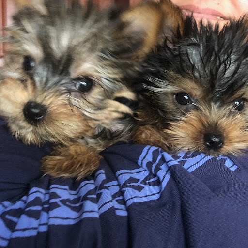 We explained to him what we were looking for, 2 Yorkies possibly and it just so happened that that day they received 2 Teacup Yorkie puppies - a brother and sister. He said he could show them to us thru the glass, but we would not be allowed to touch them - which I completely understood, these are puppies who have not received their shots yet. As soon as he brought the little munchkins to the window we knew they were meant to be with us.