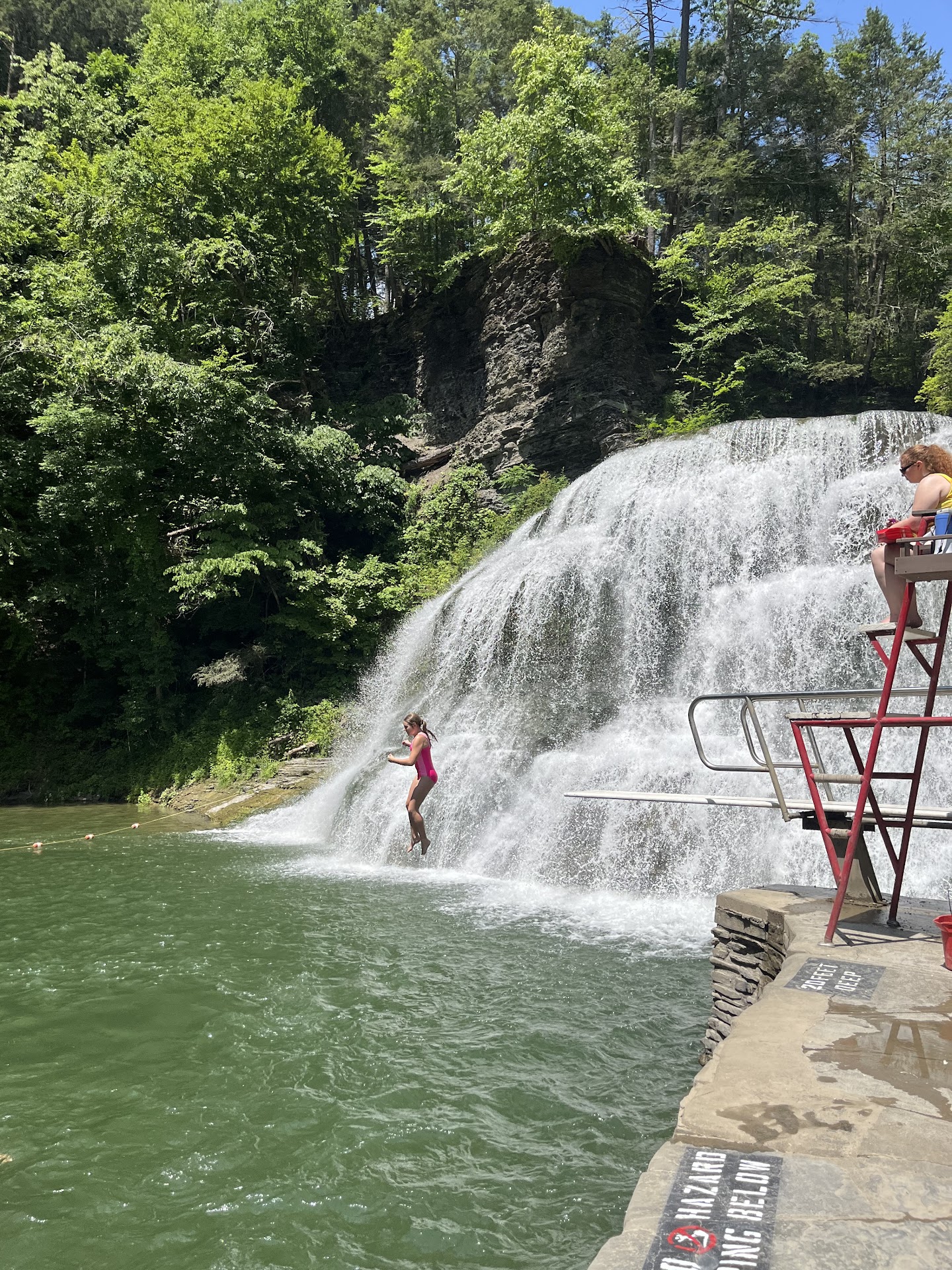 Do not miss this destination if you happen to be nearby!! I haven't had this much fun near a waterfall in a long while, and this place felt perfect. It's a great and refreshing spot to swim in the summer. Sure, the water is really cold upon initially getting in, but swimming up close to the falls and feeling the water beat your back feels so good. It's strangely relaxing haha. Don't want to torture yourself getting used to the water? Just jump from the diving board! Just make sure a lifeguard is around. The lifeguards here are very nice...