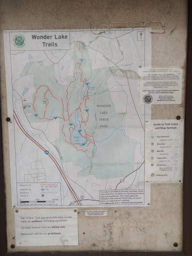 Make sure to keep a pic of the map on you. The trails are clearly marked and blazed but lots of intersections and shortcuts that could come in handy. The YELLOW (a multi-purpose trail) offers a fairly challenging uphill to the top of the mountain then starts to drop off as you head towards the lake. The BLUE is a great hiking trail with less ticks, more rocks & boulders, and ONLY for on foot hiking. The YELLOW could also be a challenging and exhilarating MTB ride, just watch out for wet downed trees across the trails in certain spots.