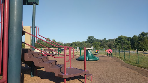 This is a large town park with a new playground. On-site facilities, and great fields for sports and leisure. No dogs, but that's to keep the area clean for all to use. It has a nice track around a small pond for walking and cycling (just be aware of others). A good size parking lot, and available concession stand (only open during events). The stand does not house a stove, grill, or oven, so any hot foods are microwaved. I come for my child's soccer games, and it's a great place to bring family when it's not...