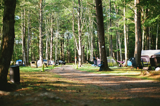 The whole trip was sunny and perfect, we couldn't have asked for better weather. The sun really made the campground shine! We took T16 & T17, at the very back of Pine Cone Alley. We fit 2 tents on each site with plenty of room to spare, especially considering each site had one cabin style tent on it. There are true fire rings, unlike the DEC campgrounds around here. There are even rims with grills to set camp cookware on over the fire, which was a nice touch!
