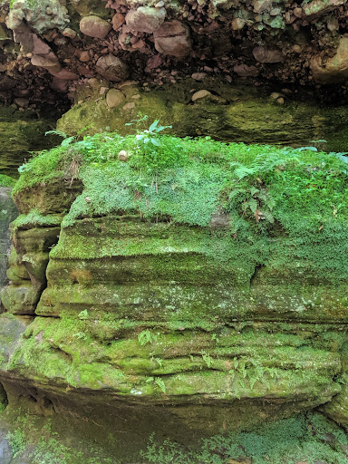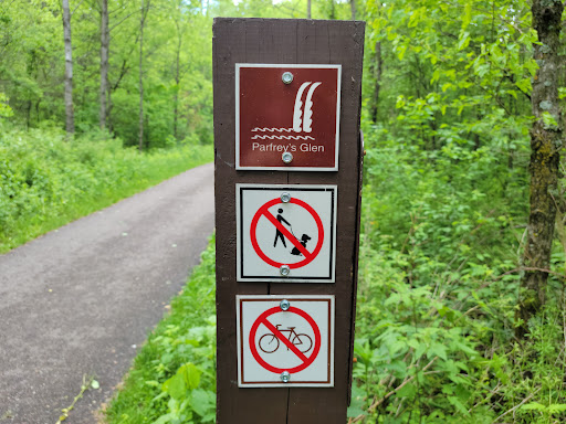 As for the hike, it has changed so many times over the years from spring rain and flooding. I never know what it's going to be like besides beautiful. The walk is pleasant, some of it paved. However, there are places where you have to climb over some rocks, and pass through the water passage, either getting your feet wet or stepping on rocks to make your own path. Although, a well traveled hike, it's still a bit challenging if you have difficulty walking, or even with small kids. Take your time, walk carefully, and maybe have a walking stick for support as you cross the stream areas. The rocks can be slippery. The waterfall is small, but pretty also, and a nice reward at the end of the hike. It's not a long trek, and can be done in less than an hour, out and back, or take your time and spend a few hours there. There is also a trail, at the beginning, that is part of the Ice Age trail, if you want to venture off on there...