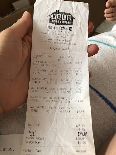 Every single time I've ever walked into the Valu Home Center, in Niagara Falls, to do some shopping, there have always been attentive employees, greeting me with a smile. As I walk past the checkout area, someone always offers to help me find whatever it is that I'm needing. The associates at this store are knowledgeable and friendly. I don't know if they are all trained in every department, but I DO know I've never experienced had to wait to be helped (while the only employee in a specific department takes their break, or can't be located, or happens to have a long line of customers ahead of me to assist, while 10 employees stand around chatting) The employees here seem to genuinely care about customer service. I love that Valu isn't so huge and corporate that they still VALUE the customer. I will always purchase what I need from this particular store, from Valu, if it's a product they have available. Great customer service, good quality, decent selection, and some very good deals! I appreciate it! You've got a lifelong...