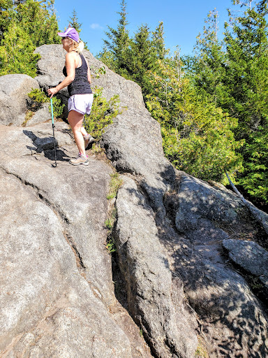Nice little hike. We climbed up via the Short Trail, which begins climbing almost immediately after the registry box. We found the trail to be typical of Adirondack mountain hikes- lots of roots and varying sizes of rocks to scramble over. While this is much easier than a 46er, it still requires a moderate amount of fitness. The short trail is well marked, so navigating to the summit is rather easy. We made it to the summit in about 45 minutes, as we took time to stop and enjoy the rewarding views that the trail provides towards the top. The summit is sort of an expansive rock ledge, flat, giving room to sit and rest and have a snack while taking in the views. On the way down, we followed the Long Trail, which was less steep, but a little bit longer than the Short Trail. We decided not to follow the Rock Garden Trail once we reached the junction between the two paths. In conclusion, this was a great little trail, one that can be completed in a little over a couple hours. I would recommend this one for families with young children, hikers without time to go for a 46er, and anyone seeking a fun way to get a moderately strenuous workout. This hike also offers 46er type views without the...