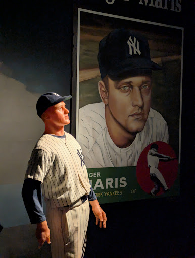 If you've ever wondered what it would be like to walk through someone's obsessive shrine to pinstripes, but with mannequins that look like they were sculpted during a blackout, this is the place for you. Want to see a wax Joe DiMaggio locked in an eternal awkward smirk, desperately trying to forget his marriage to Marilyn Monroe? They've got that. Mickey Mantle makes an appearance too — I think. It could also be a melted Elvis in pinstripes. Hard to say.