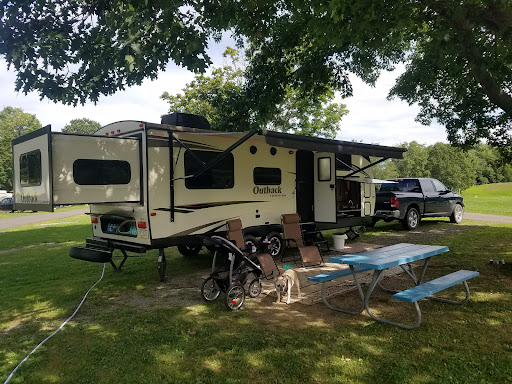 We love bringing our RV here during the offseasons and on weekdays. There's a crowd of regulars who congregate for the summer and make outsiders feel unwelcome and uncomfortable. Otherwise it's both beautiful and serene with clean facilities, friendly staff, and fairly reasonable rates. Another reviewer mentioned the social climate at the Hickories as well. When we came midsummer, we were made to feel like we had crashed a private party. We were surrounded by people who had spent the entire summer together at this campground and we were definitely not welcomed. Apparently a bunch of coworkers from some nearby company come and really settle in. They surround their RVs (way beyond the bounds of their campsites) with dog enclosures, tents, attachments (some even grow gardens!). There was even one family flying a political flag and others who set up things like birdfeeders, lampposts and windchimes. Charming and homey for a summer cabin, but this is supposed to be camping. I could've stayed home for this atmosphere! I camp to be in nature and get away from suburbia - not to have it be recreated around me. They all gather for a community campfire every night (to which we were not invited). None of this would actually bother me but for the fact that these are unfriendly and entitled people who treat this like it is their private property and others are intruders. I prefer to go off season when the summer crowd breaks camp and goes back home. (I actually believe there are one or two who live there year round, because they have decks built around their RV.) It's a shame that something that's meant for everyone to enjoy has been co-opted by a large group who treat it like it's their...