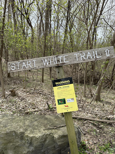 Lots of birds, including a lively small flock of chatty cardinals in the woods. Some very steep, rough but climbable hills for those who enjoy scrabbling up slopes, and a map of the marked trails deep inside the park where the white and yellow paths meet, nearer to the entrance of the white trail down by the YMCA. In wet or snowy conditions there are a couple of short, steep sections, so either bring hiking poles or clothes that you dont mind getting a bit muddy. Or just go to another park, so I can continue enjoy this one...