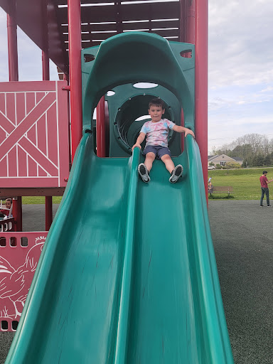 Absolutely love this place! There's a spot that plays sounds too but lately it hasn't been working :( can the park by chance fix it?? I really love everything about this park and my kids do too. I live in Newark and will gladly drive the 30 mins to this park lol. It's got a great size park, that foam like ground and not concrete, a place to use chalk, great length of grass area for dogs or playing ball or catch, beautiful surroundings if you want to walk in the small woods area next to lollipop, plenty of picnic tables for family's to eat lunch, a good sized area off to the side for a birthday party, it's always super clean AND did I mention it's right next to lollipop farms where you can go pet the animals or adopt...