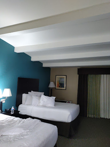 Read moreWe stay here every time we visit the area. The main draw is the pool, as we have a young child who very much enjoys it. The pool was a little on the chilly side for what I would expect from an indoor pool but it was no big deal. We still had fun. The pool and pool area are clean, and towels are always stocked if you don't pack your own beach towels. There are tables and chairs as well as lounge chairs in the pool area. A great place to bring a book and sit by the pool. There are some arcade games and air hockey table in the pool area but cannnot speak to those as we did not use them. The staff is A++ from the front desk, to housekeeping, breakfast staff, maintenance, everyone. Every employee we passed in the hallway greeted us with a smile and a friendly hello. Our room had everything we needed. Fridge and microwave were in good working order and we used both without issue. Lots of channels available on TV. It was a nice big modern TV with HDMI hookup so we were even able to connect our Nintendo Switch to the TV to play in the room during some downtime. Pillows left a lot to be desired, to be honest, and the mattresses were not super comfy. We've always stayed in a queen or king room before and this was our first full-size bed stay. Not sure if that's the difference but we were grateful for our bed and pillows when we got home. One random annoying thing is that there's no place to hang a hand towel in the bathroom which isn't very practical, especially with young kids. There is a washer and dryer available for $1.00 each (quarters only) so bring some quarters if you want to use them. What a great perk - I never expect to have laundry available at a hotel! Breakfast has a good variety of items - scrambled eggs, bacon/sausage, home fries, hot oatmeal, yogurt, toppings, cereals, hard-boiled eggs, bagels, English muffins, toast, danish, muffins, and waffle makers. Something for everyone. Water and juice dispensers are available, along with Seattle's Best coffee which was delicious and piping hot. Really no complaints about breakfast at all. Gloves and hand sanitizer are available. Tables are always wiped down and everything is restocked often. I really liked seeing all the guests just enjoying themselves socializing at breakfast and enjoying the outdoor spaces. There is an outdoor area with tables and chairs accessible through the pool area. Saw people out there playing cards and just enjoying themselves. There are also tables and chairs near the front entrance along with a nice little fountain that was very peaceful to sit by while chatting with friends. It's more than just a place to sleep. It's a great place to just spend time. Will return again. Staff was the most memorable part of this most recent stay for us. Everyone...