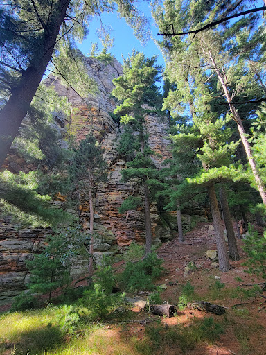 The campsites are the average size of most Wisconsin state parks, with a fair amount of hiking trails and picnic areas. Plus there's a very long stairway that goes up to a look out area with a spot to sit at the top. It's "303 steps" to the top however there's landings fairly often and a few benches to sit and rest on the way up and down.