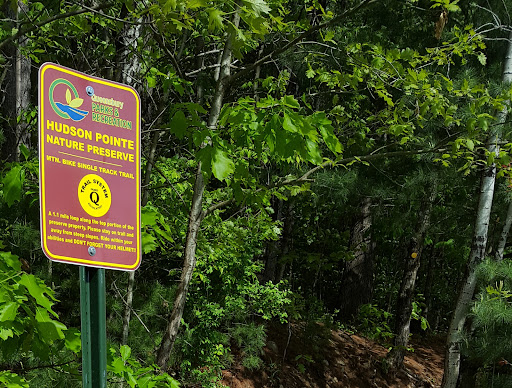 Hudson Pointe Nature Preserve is a great place to hike along the banks of the Hudson River. Altogether there are about three miles of trails here. The trails are wide, well marked, scenic, and easy to follow. There are many interpretive signs along the trails to help guide you along. Overall, none of the trails are very steep and this is a moderate hike with rewarding scenery. The “Green Trail” is probably the best of the trails to follow as it runs right alongside the banks of the Hudson. As you walk along the Hudson you can look across the river and see Moreau Lake State Park’s Big Bend Preserve hiking area. There are also many spots to fish along the trail. The “Blue Trail” also has some nice views and connects to another set of hiking trails owned by the Queensbury Land Conservancy. The other trails in the preserve are peaceful quiet walks in the woods. The parking lot has room for about 10 vehicles. Check the trail sign in the parking lot to choose your hiking route before you head in. Maps can also be found online. This hike offers a lot and you will not be...