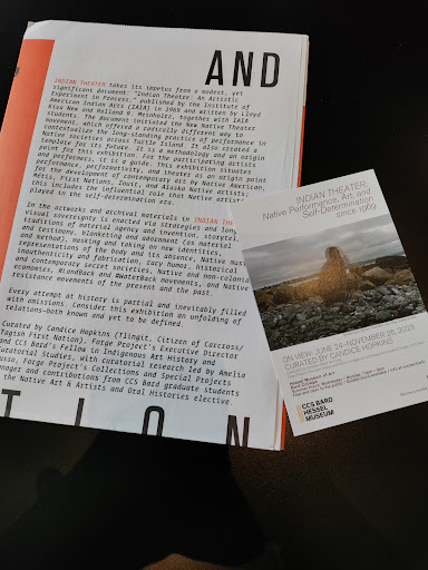 Wow -- the exhibit, "Indian Theater: Native Performance, Art, and Self-Determination Since 1969," absolutely blew my mind! This is such a major exhibit and so important from a variety of standpoints. Vital and thought-provoking on a political level, a sociological level, an avant-garde art level, a historical level, a Native American symbolic and artistic level, a feminist level, a Two-Spirit level, a drama/theater level, a musical level, a multi-media level, a philosophical level....just so amazing in every way. This is a huge exhibit and has been running for awhile. I hope, hope, hope to get back at least once. It is a lot to take in. I learned a lot and was very inspired by the breadth and depth of this amazing grouping of artists. As for the venue, the museum is free and the grounds are terrific. The bathrooms are clean and there is even a device at the water fountain so you can fill up your water bottle. There are also seats outside and inside if someone in your group gets tired. I love BARD. I am so thankful for BARD's role in the community. I can't believe I saw all...