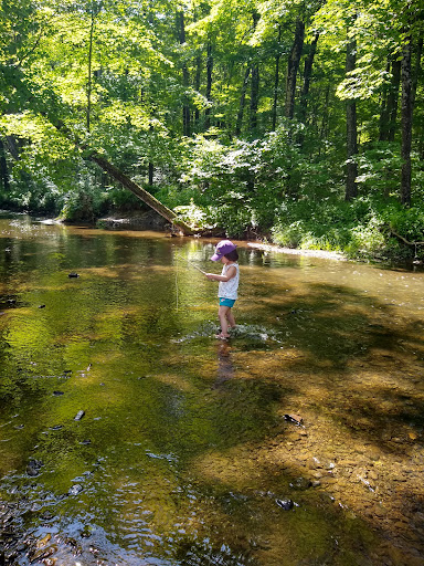 Love it! It's an adorable, beautiful little park with a few different trails to choose from. They are lined with scenery with several foot bridges over streams. There is a paviallion full of picnic tables and a bbq pit, and several fields to play a variety of sports in. It's not a massive state park, quite the contrary it's a small little town park. But great things come in small packages and I highly recommend you take a stroll through here. The shorter trail is 1/4 mile with the longer one being just over a mile. Not only that, but it's pet friendly! Bring your dog for a nice walk through...