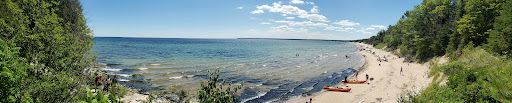 Read moreCave Point is cool, but honestly it's small, the hiking is brief and scary with toddlers, it's crowded, and you can't explore much. THIS is the place to see the same kind of beautiful shoreline, but without all the people and peril. The beach looked crowded, but we went for the hiking. The brachiopod trail was perfect. We were able to explore the rocks and shore with our little ones and yes, still keep them close, but not be afraid they'd fall in and perish immediately. The trail was beautiful, shaded, and quiet except for the crashing waves. Plenty of parking on a Friday.