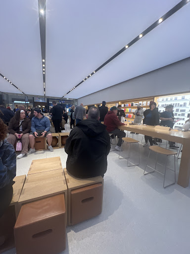 Read moreThe folks working in the store were professional, knowledgeable and polite, HOWEVER, it blows my mind that you can tell a customer to come back in a week because your store is too busy, and still have a successful business. To have that many people in a store all needing technical assistance ... wow. You walk into a large room full of tables where people are just meandering and talking like it's a coffee shop. The staff are wearing non-descript dark blue shirts with a small Apple logo on it but at first you can't tell who's a customer and who's an employee. There's no line. There's no identifiable person to speak with so you have to interrupt a conversation to ask what the procedure is for speaking to someone. When I did find the person I was told they were booked up until next week. This is not Black Friday or Christmas or even the weekend. When I commented on how ridiculous this is the person suggested I come back later just before the store closes, which I did. When I arrived the second time I was relieved to see a group of 5 employees standing there talking but as I approached 4 of them scattered. Again, I was told I'd have to come back in a week. "You just had 4 employees standing here with nothing to do." Seeing my visible frustration the floor supervisor said she would work with me and apologized for the delay. She was very disarming and professional and I applaud her. During the process of seeing why my phone had 0 power they needed my apple id and password which I provided and was needed to turn off the security features. Then I'm told their system is down, they can't verify the serial number and I need to provide a receipt ... from 3 years ago and a different store. Ok, I understand people come in with stolen phones but this is another ridiculous expectation. Now I can see why the store is packed with people needing help. Icing on the cake... try calling the store to get an update on the repair. That phone must have rung for a few minutes but no one ever picked up. Apple, you may make a decent product and your people are polite but your customer service model after the purchase sucks. Quit trying to be hip and cool and work on making sure frustrated customers walk out happy customers by making the process...