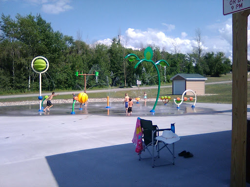 Love this park! This playground has The rubberized outdoor ground material which feels awesome to run on. The playground set the town of Sweden chose to install has this kind of soft grippy coating on everything you would put your hands on. It's awesome for kids especially when they're climbing. Right next to the playground is a nice concrete area with picnic tables that are metal and covered with the same gripping material the playground has and they're covered with a roof. Right next to that there is a splash park. This playground is in really great shape and conveniently located in the town of Sweden just outside The village of brockport. So there are plenty of stores and restaurants nearby. There's also a public restroom a short walk from the playground. They also have a porta potty...