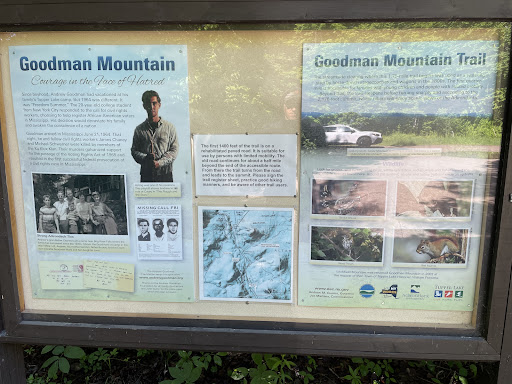 Goodman Mountain was a nice, gradual hike, not challenging. I tend to wear a camelback on all mountains (hydration is a religion to me) however, many people didn't have one. The hike didn't take long, and was fun. It had rained the day before so the forest was full of mushrooms and we could hear some ravens talking. Passed a good amount of dogs on their way down. They were all on leashes, which was good to see. The top had some nice views but was not very large. We met two other pair of hikers up there and there was room for us to be distant, but many more would have crowded the peak. We couldn't find the marker, but I think maybe one of the other groups was sitting...