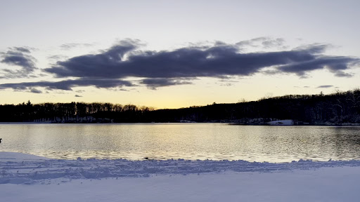 Beautiful lake with trails close by so you can walk with the lake in view. The lake had beautiful water lilies when I went there. There is free limited parking here. The place warns one of possible bears, venomous snakes and ticks that might be found as you start the walk. You can also see small blueberries on the trail...