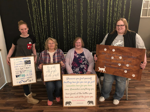 Went here for a family girls night for the first time and had a ton of fun. Great place to have fun and make a custom sign. You can get creative and pick exactly what you want to do for your sign, the size, the wording, wood stained or painted, framed or not framed, the colors you paint the words, ect. You can take snacks and drinks for your get together and just have a great time. It really is easy for anyone to do and doesn't require artistic skill, definitely recommend. I also previously purchased the tape measure already done and absolutely love it, no marks on a wall that will one day be painted over or a flimsy cheesy, childish looking "watch me grow". The tape measure is classy, goes with any decor and timeless, it doesn't matter if your kids are two or twenty two this still looks nice...
