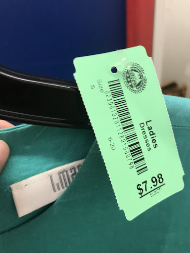 You could put the price tag on the clothing tag instead of putting a hole in the dress.
