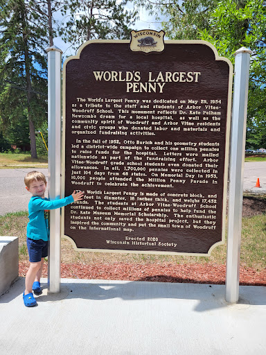 Read moreThe concrete penny is creative and explains the history. You need less than 5 minutes to visit it to say you have been there. It was disappointing that they only made it one sided. I think the signs should say world's largest one-sided penny. It would be a great addition in the future if they at least painted the engravings...