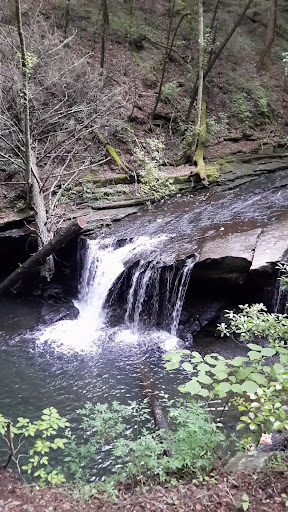 Epic hike through Grundy Forest State Natural area. Today, the weather was perfect and the trail was not crowded at all. We only saw two other people while in the parking area, and not a soul on the trail itself. Trail is marked with easy to follow blazes and well maintained. Path does have a lot of roots and rocks to navigate so be sure and wear sturdy shoes. Water was flowing today and the waterfall was gorgeous. Huge rock formations to look at and massive trees which must be at least 100+ years old. Would definitely do this...