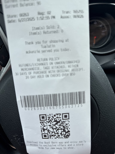 Read moreWent there looking for womens cowboy boots. When I entered the store I was greeted and asked if they could help me find something. I said I was looking for boots and asked if there was an associate in that section to assist me. She kind of gave me an idk. So I went back and started looking. Probably 2 people walked by helping others and didn't offer me any kind of assistance. When someone finally acknowledged me, a native looking girl with lots of tattoos and beaded earrings, I asked if they had more stock, and if I ordered something from the warehouse how long it would take. She answered and I let her know I couldn't wait that long and she basically said ok and walked off; didn't inquire further or try to help me in any other way. I let the girl know at checkout that she was rude and not helpful and she apologized. I will not be returning and will advise others to not go here if you need any kind of...