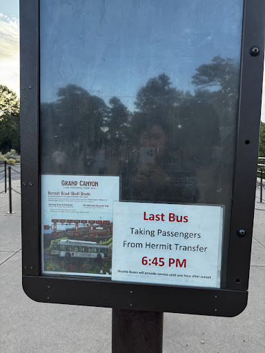 Read moreI went during the first week of November. You can take the blue line to this bus stop and then transfer to the red line which goes west all the way to hermit’s rest. It stops at numerous points on the way. Hopi point is great for sunset. Bus was running every 10-15 mins, usually fills up, but no line when we went. I can see how it can be super crowded in the summer. There’s no other way to reach these points so you’re stuck having to take the bus. Bus runs until November 30th, then road...