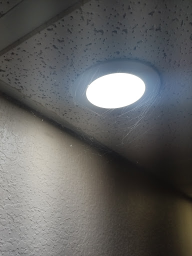 When we first walked down the hallway to the room, the musty smell of the place was already a red flag. There were spiderwebs and spiders right above the room door with dead bugs.