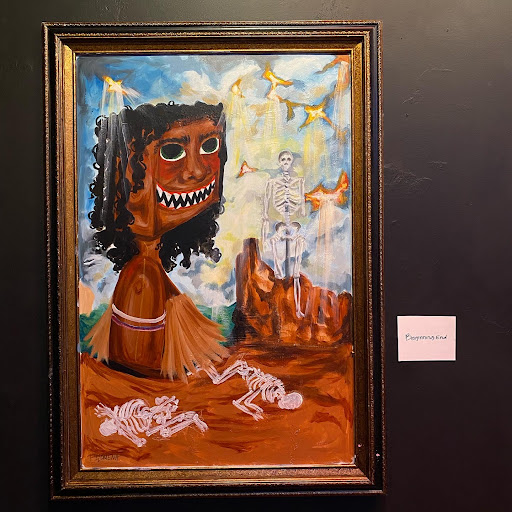 The dramatic black walls and eclectic art provide a striking backdrop for gallery owner Nyx and the creative incubator she has nurtured here building a community focused gallery. This gallery offers a welcome reprieve from the fast-paced art world—a place where we can slow down, reconnect being an artist with the ‘why’ behind our art, and be encouraged to grow, both personally and professionally.