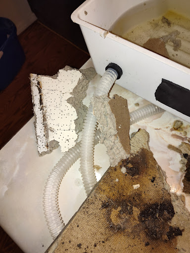 Fast forward a few months. I got home one summer day to find that my ceiling was leaking. Not only that, but a ceiling tile in my bathroom was bulging like an upside-down camel, and was just as full of water. It was dripping all over my floor, so I mopped it up and called the 24-hour maintenance line. My experience so far had been great, why would they fail me now?