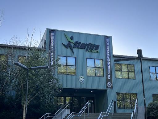 The park and sports fields are located in the Green River Trail and the Lake to Sound Trail. You'll see plenty of joggers, runners, walkers, bikers, and all sorts of people on the trail making a pit stop by Starfire and the park.
