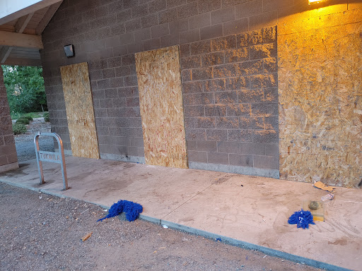 The ground is littered with garbage, some seeming to be paraphernalia. I didn't add images of that. The bathrooms were boarded up and marked with graffiti. A burned down bench sat just in front of one. The garbage can was also partially burned. On another bench was some sort of fluid that had dried up. It wasn't from the birds. But I don't know what it was. Maybe it was paint. Maybe it was milkshake. Maybe something else. The view of the pond was depressing. We decided not to take the trail, so this review may or may not be fair. We just didn't see a point...
