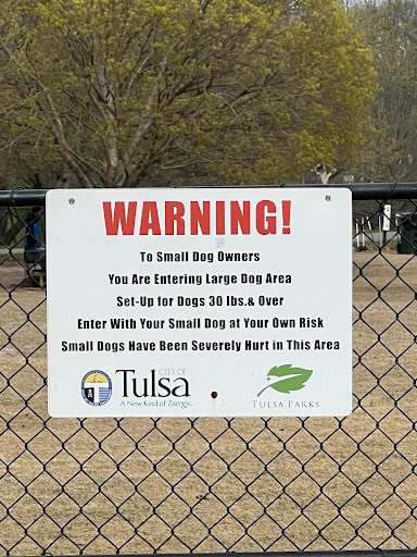 Read moreOne of my favorite dog parks in Tulsa Oklahoma because it's a nice big park, well taken care of, with accessible water for the dogs. Generally doggy pools too. So I generally don't have to worry about bringing water to this park but still might need a towel for quick clean up. If you don't mind lots of people and dogs this is a good place. It does have lots of benches and a few tables so normally not a issue about finding a spot to relax while your fur-baby gets some exercise and socialization done. If you prefer a smaller environment and not so many dogs check online for an average time frame of peak hour times (busy times of the day) or pick a smaller dog park there're a few different spots to choose from or if you have a small dog generally the small dog section is pretty mellow and not full. I have a small, medium, and large dog so all my fur-babies go into the big area but they know how to handle themselves and usually no issue. Occasionally my medium girl wants to bark and chase some of the other dogs but doesn't like it when they flip it on her but that's just part of her breed it's in her to heard animals not...