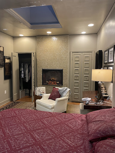 The room I love, and the only room I stay in is 226 - for its comfy bed, sky light, and faux fireplace that gives me sun light by day and a warm glowing ambiance at night. There’s a cozy reading chair for taking zoom calls. The shower and jet tub are for tall people - The two big closets (one with hanging rod and one with shelves) are a dream for my OCD organization needs. There’s a fridge and a microwave and a keurig - Plus all the cool shopping is nearby (check out Tulsa Vintage Co for great vintage denim) and it’s close to the airport. Lately it’s been way cheaper to Uber than to rent a car so this proximity to airport is a boon.