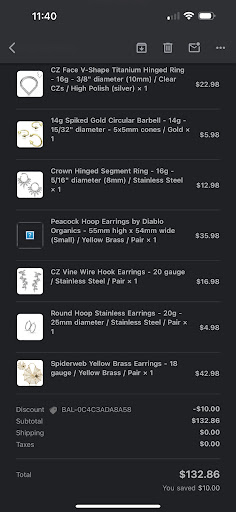 Quality of the jewelry seems great. Customer Service also seemed great when I placed an order and received a phone call to make sure sizing of the diameter (for flat backs) were correct. I was disappointed when I found out that the return policy applies to all jewelry and not just broken or damaged items. The way the policy is worded makes it seem like it’s only referring to only damaged/broken jewelry. I also understood that anodized jewelry can’t be returned as well, but high polish can be. I miss understood and opened the heat sealed packaging not realizing. Once I realized the jewelry was going to be too small for what I needed, I mailed it back to them the same day that I received it. It’s a new piercing so I didn’t have any other size barbell to compare it to and make sure it was the right size before opening the heat sealed packaging. After they received the returned items I received an email stating that they were sending it back to me because of their return policy. I immediately had questions because I didn’t realize that I had misread the policy nor did I understand how I was supposed to know that the jewelry was too small and could possible cause me issues that could lead to rejection without taking it out of said packaging. The representative that I spoke to initially was Liz and I asked them these questions. I was given alternatives on what I could have done instead of opening the packaging, but it was how I was being spoken to that I had an issue with. Liz was rude to me when I had genuine questions and was genuinely confused. She kept informing me about the policy and implying that I must have read it because when you return an item to them they ask that you include the original invoice. I cut off the bottom of the original invoice because I had wrote a note with personal information on it and couldn’t include that in the shipment back to them. I had read the policy, but like I said It seemed as if it was only pertaining to broken or damaged jewelry and not all of their jewelry as a whole and I didn’t need Liz throwing the fact that I had cut off the bottom of the invoice in my face and being rude to me and stating “It is in our policy that you agreed to upon checkout and again on your receipt that you saw because you cut off. “ After that remark I gave the suggestion of adding examples in their policy of what customers could do so that they don’t run into the same mistake that I had or the same feeling of not knowing what to do in that situation. I even stated for them to use the examples that they themselves gave to me. I’m pretty sure Liz passed me off to someone else and that person was much much more sincere and actually seemed like they cared about what I had to say. I even purchased two of the same barbells from them again, so I didn’t understand how they (Liz) could be so rude to me? I never had a problem with why their policy is the way it is because I understand that we are in a pandemic and that it is unhygienic in a way to resell jewelry that has been returned. Whether it has been worn or not. I have been to piercers and body jewelry shops that have medical grade equipment/instruments/machines that will thoroughly sanitize and sterilize jewelry, but I guess it is my fault for thinking that every body jewelry shop is equipped with said instruments and what caused me to believe that they were only referring to broken or damaged jewelry in the...