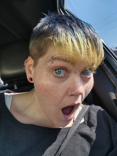 First mistake, I only brought a photo for the type of cut I wanted and not the color. I ended up with literally a half and half of blonde and red stacked hair. The red reaches up to my temples.