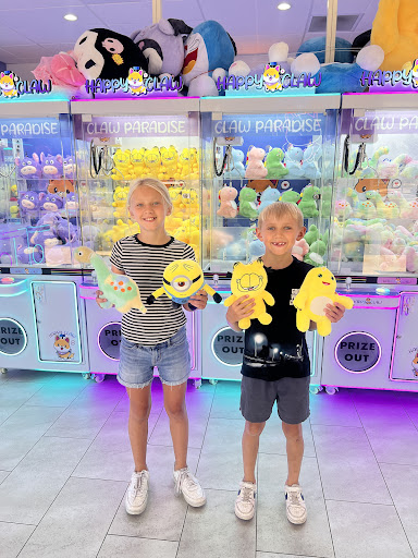 In my honest opinion, this place is great for a quick fun passing time while waiting for a pizza feel. It's smaller than we thought but that's okay. My boys did enjoy it, however the plushies are not really worth the payout. They are very cheaply made and for how many tries it takes to win one with the rapid jerking of the claw, (average $8 to $12 a plush) I don't see it worth the amount we spent. We spent $125, we originally only wanted to spend 100 but because they had issues with the card machine I had to go to the nearest atm and left my husband with our boys there, you know how hard it is to tell toddlers you have to wait until mommy gets back, so my husband spent 25 while waiting and won 1 plush. There is an option to trade your smaller prizes for a larger plush but to get one size up you have to trade like 10 plushies for one large. Which averages around $50 to $70. We went through 130 tokens in 20 minutes. I'm sorry but for the cost, prize worth and quickness of play I rather go to Dave N Busters. Thank you for the quick fun time there, buy I don't think we...