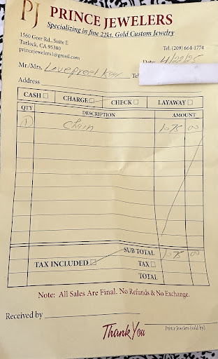 He is so fraud he charge 145$ for per gram chain three days before i buy it from here when i ask other jewellers he says $125 per gram gold when i ask him he is making fraud by saying tarrif on it how he make $145 when i said i need to return he said i will take $100 per gram never visit this place he said no return no exchange what the hell is this gold or artificial....you can check in this bill no measurement of weight no tax not mention how much exactly hi charge...he told us $145 i charge including every thing $1457.12=1032.40$ even you calculate and check but today price is included every thing cost upto $1257.12=890$ i mean you check the fraud level ...apar from that when i call him and ask him send me the bill how you calculate and how much he put tax he put my number in block....never ever visit this place you hard core money totally waste๐๐ป๐๐ป๐๐ป๐๐ป๐๐ป๐๐ปwhen i told him i need to return he said i will gove you only gold price which is equals to *100 gram and i will give you 730$...with in 3 days 345$goes with no reason no...