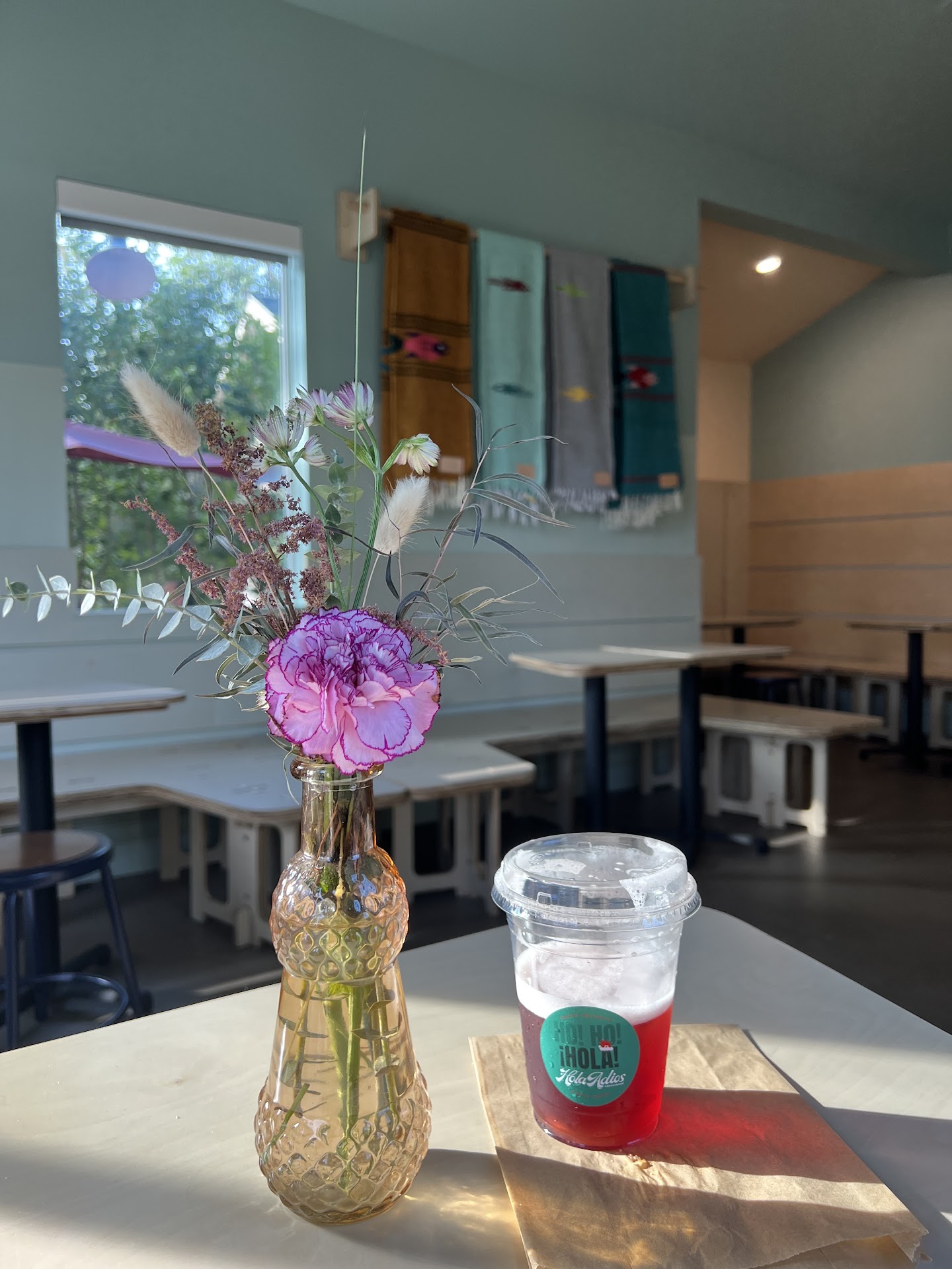 The modular seating, nice reggae and other background music, and plentiful outdoor seating make this a good social meeting spot (though I admire the two remote workers I saw who were able to focus on their jobs on a busy Friday!).