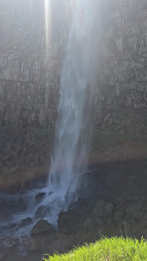 The waterfall had a heavy flow during our early June visit! If you park on the road next to the waterfall it is only a 5-minute hike before you will find yourself actually behind the waterfall. You do have to climb down a rocky hill that would be difficult for those with mobility issues . I myself am plus size and not in the best shape right now with minor knee issues and I was able to easily navigate down with a helping hand. Make sure you...