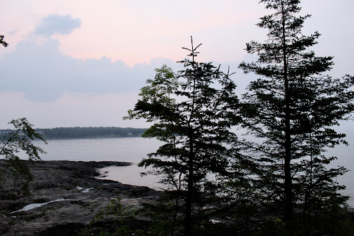 I went to Burlington Bay Beach to take some sunrise photos during a recent first-time visit to Two Harbors. Though I didn't get the images I was hoping for due to morning fog, I felt safe walking along with wooded path (as opposed to the paved path recommended by my friend) to the point in the pre-dawn hours. The tree roots were just as photographic as the lake, even more so due to the haze. There is a campground across the road which has spectacular views...